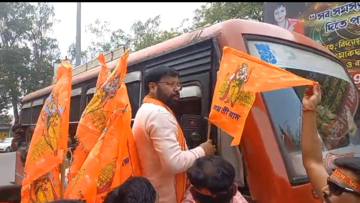 হনুমান জয়ন্তীতে বাসে বাসে গেরুয়া পতাকা লাগালেন বিজেপি বিধায়ক