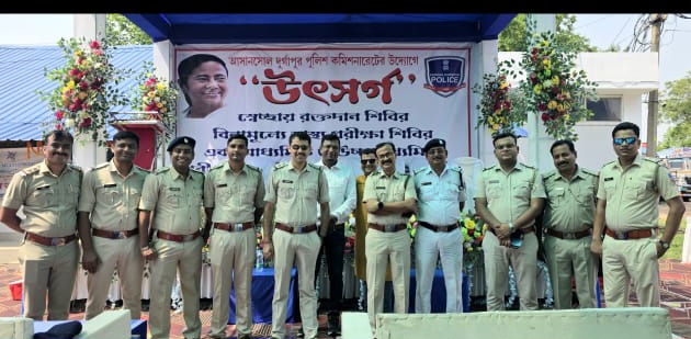 সংবাদদাতা,আসানসোলঃ ‘উৎস্বর্গ’ প্রকল্পের মাধ্যমে আসানসোল দুর্গাপুর পুলিশ কমিশনারেটের উদ্যোগে সমস্ত থানাগুলিতে পর্যায়ক্রমে আয়োজন করা হচ্ছে স্বেচ্ছা রক্তদান শিবির এবং একই সঙ্গে বিনামূল্যে স্বাস্থ্য পরীক্ষা শিবির। এই রকমই এক রক্তদান শিবির ও স্বাস্থ্য শিবিরের আয়োজন করেছিল জামুড়িয়া থানা। এই অনুষ্ঠানে উপস্থিত ছিলেন কমিশনারেটের ডিসি(সেন্ট্রাল)ধ্রুব দাস, এসিপি (সেন্ট্রাল) বিমান কুমার মির্ধা এবং জামুড়িয়া থানার ইনচার্জ সোমেন্দ্র সিংহ ঠাকুর সহ অন্যান্য পুলিশ আধিকারিক।