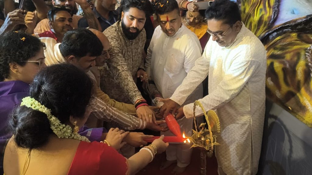 এদিন এই পূজা মণ্ডল ও উদ্বোধনে এসে বিরোধী দলনেতা শুভেন্দু অধিকারী জানান, “আজ সহস্র শঙ্খধ্বনির মাধ্যমে মায়ের পূজোর সূচনা হল ৷” কিন্তু, কিছুক্ষণের মধ্যেই তাঁর কথার নিশানায় চলে আসে রাজ্যের শাসকদল তথা মুখ্যমন্ত্রী মমতা বন্দ্যোপাধ্যায় ৷ নাম না-করেই বিরোধী দলনেতা বলেন, এ রাজ্যে ধীরে ধীরে হিন্দু বিপদের মুখে পড়ছে। রাজ্যের মুখ্যমন্ত্রী এই রাজ্যে কে সংখ্যালঘু রাজ্যে পরিণত করতে চলেছে । যেভাবে বাংলাদেশ পাকিস্তান আফগানিস্তান থেকে বহিরাগত রাজ্য থেকে এ রাজ্যে অনুপ্রবেশকারী প্রবেশ করছে তাতে হিন্দু বিপদের মুখে। তিনি এই মঞ্চ থেকেই রাজ্যের মুখ্যমন্ত্রী মমতা ব্যানার্জি কে কটাক্ষ করে বলেন ওতো দিদি নয় ওতো মমতা খালা ।