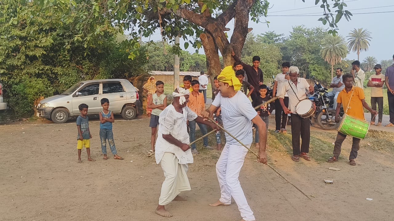 কুলটির লছিপুর এলাকার চবকা গোবর্ধন মন্দিরে লাঠি খেলা গোবর্ধন পুজোর উপলক্ষে