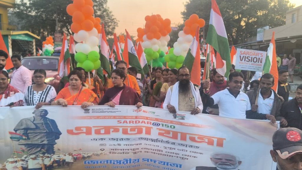 কাজল মিত্র :- সর্দার বল্লভভাই প্যাটেলের ১৫০তম জন্মবার্ষিকী উপলক্ষে, মঙ্গলবার সালানপুর ব্লকের জেমারি মোড় থেকে রূপনারায়ণপুর ডিএভি স্কুল পর্যন্ত একটি বিশাল এবং বর্ণিল “একতা পদযাত্রা” আয়োজন করা হয়েছিল। জাতীয় পতাকা এবং ঐতিহ্যবাহী বাদ্যযন্ত্রের সুরের সাথে মিছিলটি সমগ্র এলাকায় ঐক্য ও জাতীয়তার বার্তা বহন করে। যেখানে শতাধিক মহিলা, পুরুষ এবং স্কাউট এর ছাত্র ছাত্রীরা জাতীয় পতাকা হাতে নিয়ে এই মিছিলে অংশ নিয়েছিল। মিছিল চলাকালীন, জেমারি মোড়, ডাবরমোর এবং রূপনারায়ণপুর ডিএভি স্কুলের কাছে মঞ্চ থেকে জনতাকে সম্বোধন করা হয়েছিল।