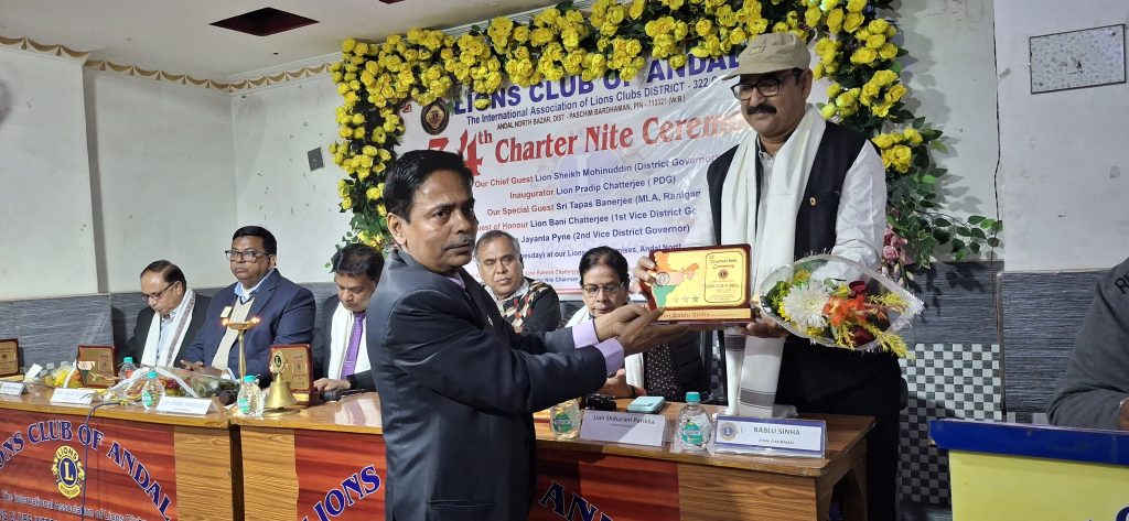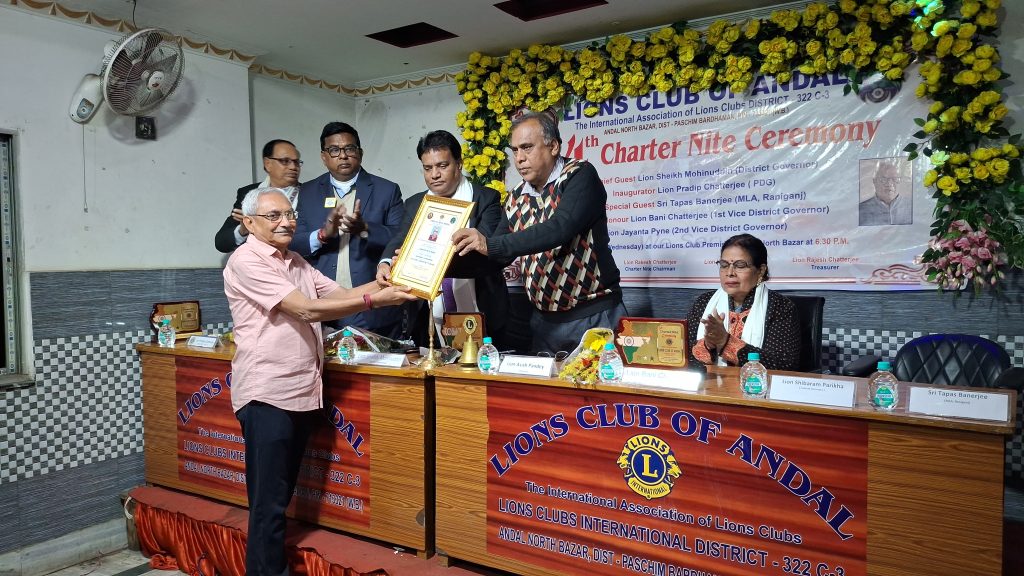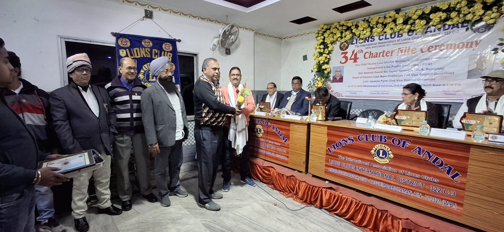 তাই আমরা সকলে মিলে একত্রিত হয়ে সেবার সাথে যুক্ত হওয়ার আহ্বান জানান সকলকে। অন্ডাল লাইন্স ক্লাবের পক্ষ থেকে রাকেশ চ্যাটার্জি জানান যে আমাদের এই ৩৪ তম চার্টার নাইট এ উপস্থিত সকলকে অভিনন্দন জানাই, আমাদের ক্লাব আরও ভালো কাজ করতে পারি এর জন্য সহযোগিতা চাই ।