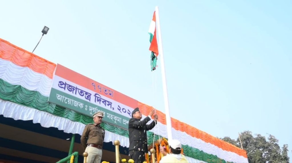 সংবাদদাতা ,দুর্গাপুর: : গণতন্ত্রের চেতনাকে স্মরণ করে ও স্বাধীন ভারতের সাংবিধানিক পথচলার প্রতি শ্রদ্ধা নিবেদন জানিয়ে মহাসাড়ম্বরে উদযাপিত হলো ৭৭তম প্রজাতন্ত্র দিবস। সোমবার সকালে দুর্গাপুরের চতুরঙ্গ মাঠে দুর্গাপুর মহকুমা প্রশাসন ও তথ্য ও সংস্কৃতি দপ্তরের যৌথ উদ্যোগে অনুষ্ঠিত হয় এদিনের তাৎপর্যপূর্ণ অনুষ্ঠান।১৯৫০ সালের এই ঐতিহাসিক দিনেই স্বাধীন ভারত আনুষ্ঠানিকভাবে নিজেকে একটি সার্বভৌম প্রজাতন্ত্র হিসেবে ঘোষণা করে। সেই গৌরবময় অধ্যায়কে স্মরণ করেই এদিন সকাল থেকেই চতুরঙ্গ মাঠে লক্ষ্য করা যায় এক উৎসবমুখর পরিবেশ। নির্ধারিত সময়ে জাতীয় পতাকা উত্তোলনের মাধ্যমে অনুষ্ঠানের সূচনা হয়।