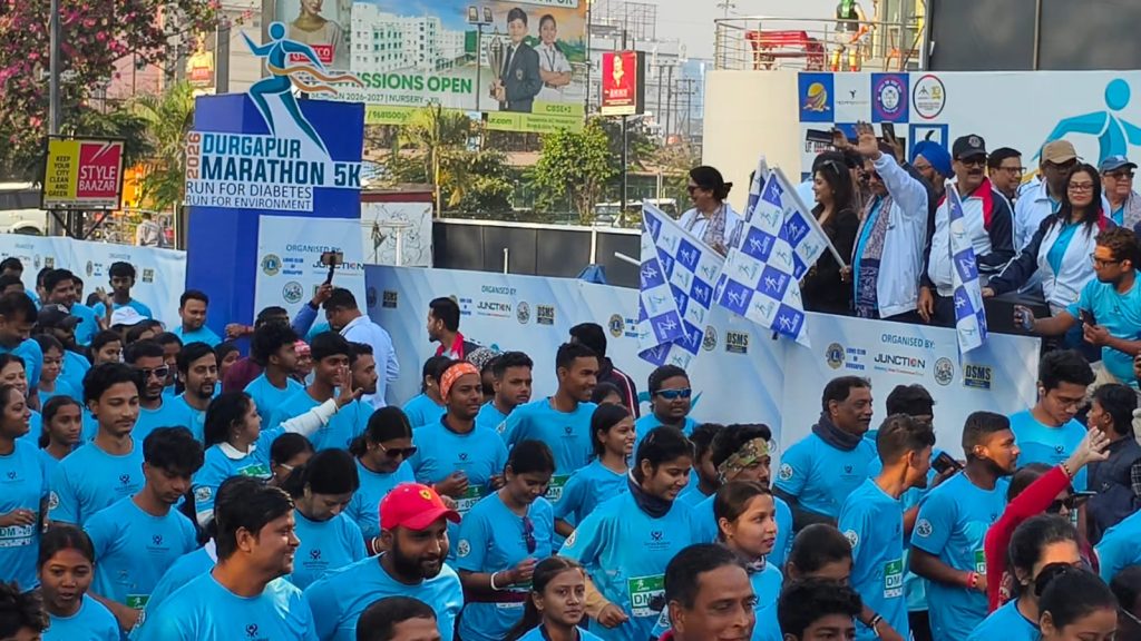 সংবাদদাতা , দুর্গাপুর, : স্বাস্থ্য ও পরিবেশ সচেতনতার বার্তা ছড়িয়ে দিতে দুর্গাপুরে সফলভাবে অনুষ্ঠিত হলো ‘দুর্গাপুর 5K ম্যারাথন’। লায়ন্স ক্লাব অফ দুর্গাপুর, দুর্গাপুর জংশন মল, বিধান নগরের (ডি এস এম এস) বেসরকারি নার্সিং কলেজ এবং দুর্গাপুর মোহনবাগান ফ্যানস ক্লাবের যৌথ উদ্যোগে রবিবার সকালে জংশন মল চত্বর থেকে এই ম্যারাথনের সূচনা হয়।এদিন উপস্থিত ছিলেন পাণ্ডবেশ্বরের বিধায়ক নরেন্দ্রনাথ চক্রবর্তী, আসানসোল দুর্গাপুর উন্নয়ন পর্ষদের (এডিডিএ) চেয়ারম্যান কবি দত্ত, দুর্গাপুর নগর নিগমের প্রশাসক মণ্ডলীর চেয়ারপার্সেন অনিন্দিতা মুখোপাধ্যায়, দুর্গাপুর মহকুমা শাসক সুমন বিশ্বাস, টলিউড অভিনেত্রী ঋতুপর্ণা বসাক-সহ উদ্যোক্তারা।